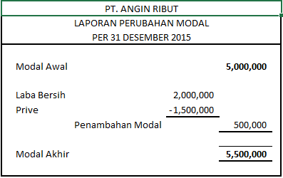 Laporan perubahan modal ini dibuat setelah kamu menyelesaikan laporan laba rugi. Jika laba rugi kamu belum selesai, maka laporan perubahan modal tidak bisa dibuat. Sebab pembuatan laporan laba rugi berpatokan dari laporan laba rugi usaha yang ada.