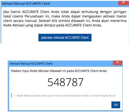 Jika Kode Aktivasi Manual valid, maka masa Registrasi ACCURATE Client akan kembali diperbaharui.Jika Kode Aktivasi Manual valid, maka maka Registrasi ACCURATE Client akan kembali diperbaharui.