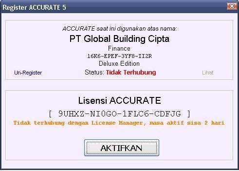 Cara melakukan aktivasi manual di accurate 5 adalah sbb: