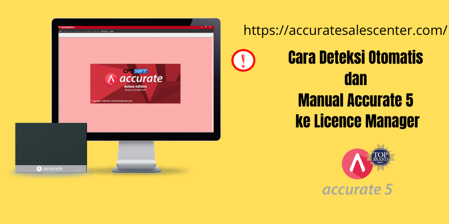 Cara Deteksi Otomatis dan Manual Accurate 5 ke Licence Manager adalah pilihan untuk menghubungkan komputer klient accurate dengan server yang ada licence manager. Biasanya bila mau register accurate akan otomatis akan muncul permintaan registrasi. Bisa juga jika accurate muncul pesan accurate tidak terhubung dengan licence manager. Bila otomatis maka accurate tidak akan muncul pesan demikian. Atau cara kedua dengan cara manual tujuannya supaya komputer kita terhubung dengan komputer licence manager.