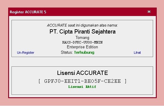 Registrasi di Accurate 5 terkadang mengalami masalah, antara lain seperti: