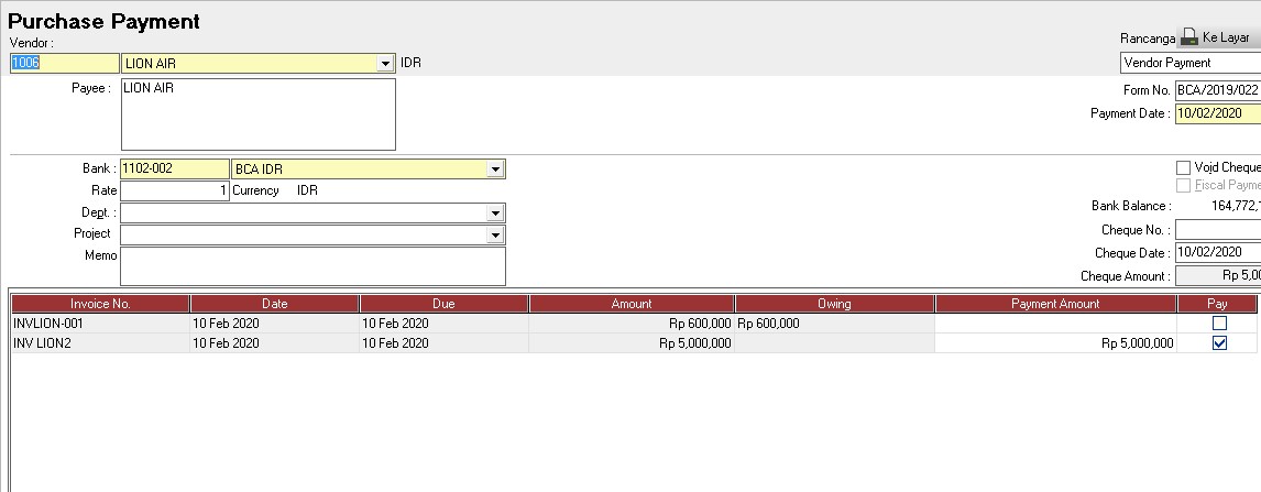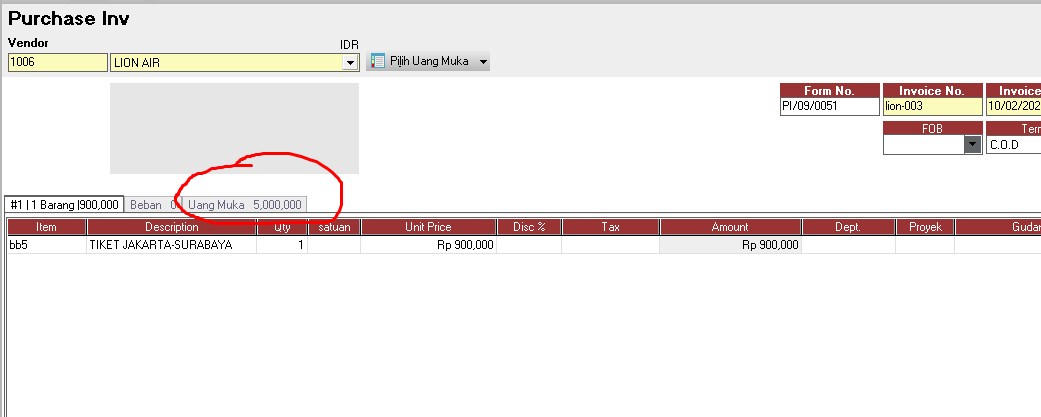 Sebelum terjadinya pembelian tiket ke maskapai biasanya ada beberapa maskapai yang menerapkan sistem deposit atau uang muka, Jadinya di accurate sebelum melakukan pembelian kita harus membuat uang mukanya lebih dahulu dari menu faktur pembelian.