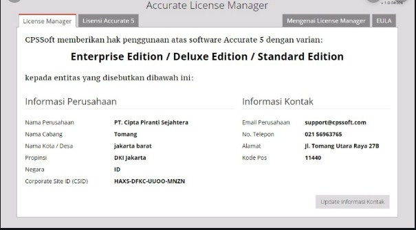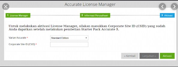 Corporete ID atau CSID merupakan bukti bahwa kita membeli accurate secara resmi. Nomer CSID digunakan untuk aktivasi licence manager. Setelah kita sudah install dan mengaktifkan licence manager maka accurate akan mengirimkan free licence. Standart dan deluxe edition mendapatkan 2 licence dan enterprises mendapatkan 5 licence diawal.