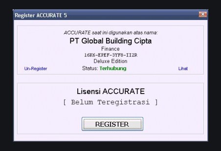 - Bila komputer sudah terhubung jaringan dan accurate tidak menampilkan permintaan register. lakukan panduan berikut