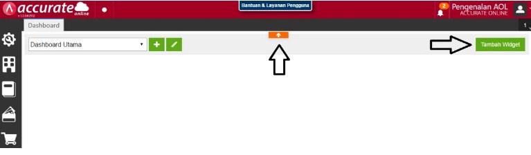 2. Pada bagian Dashboard klik tanda anak panah untuk dapat menampilkan tombol Tambah Widget.