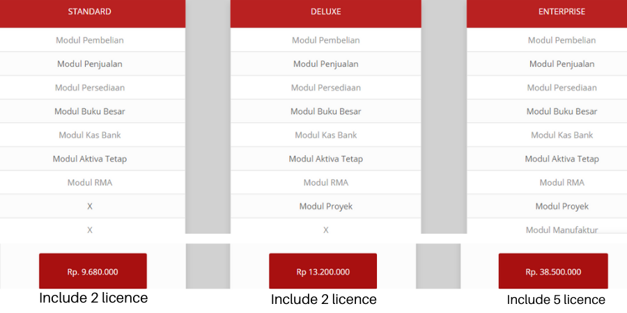 | Include 2 licence | Include 2 licence | Include 5 licence |